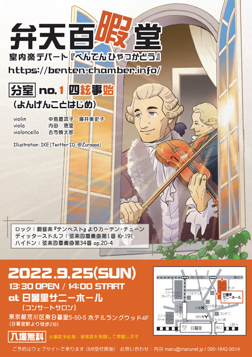 「おいおい、旅館かよw」とお思いの方も多いでしょうが、要は〈弁天〉の新シリーズ、弦楽四重奏の館です。[別館]ほどの頻度にはならないと思いますが、ゆるゆるがんばります。